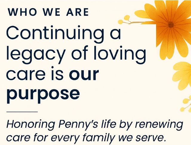 When Penny faced her own battle with breast cancer, she continued to think of others first, reminding us that love and care are the greatest healers. After her passing, we knew her legacy of service couldn’t end. Care Renewed Home Care exists to carry her mission forward—to bring comfort, respect, and renewed hope into every home, caring for your loved ones with the same devotion she showed throughout her life.
